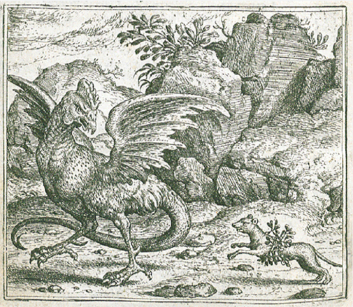 [Basilisk en de wezel] Voorzienige raad Boosheid weerstaat. Lucas 11. 21. 22. Als een sterke gewapend en voorzienig man Zijn voorhuis bewaren en bevrijden kan Zo blijft alles dat hij bezit met vrede: Maar komt er daar een over dan Die sterker is en overwint zijn kloekheid Hij neemt hem al zijn wapens ter plaatse Waarop hij zich vertrouwde met vrije moed: En deelt zijn roof uit naar oorlog zeden, Dus elk waakt en is vlijtig op zijn hoede. [5] Basilisk en de wezel. Basilisk fel serpent en ongenadig Lelijk moorddadig, Bederft de bomen, kruiden en de lucht altijd Door zijn erge venijn, alle dingen zeer schadelijk, En doodt met zijn gezicht verraderlijk Andere serpenten zeer venijnig en boos, Het bespeurde een wezeltje die was subtiel en loos En meende het te doden of geheel te verslinden: Maar het wezeltje toen noch vloog en een hoekje koos, Dacht, men moet zich bij de vijand gewapend vinden, Het wezeltje ging hem voor, geheel gewapend met rust Zeer sterk van kracht Om zich moedig tegen het venijn te houden, En toen kwam het zeer kloek uit zijn holletje vandaan En leverde de basilisk strijd voor de hand: Toen het serpent dit rook vloog het naar een zijkant En van de reuk van het kruid was het bijna geborsten: Het wezeltje omringde hem en bleef constant. Kleine partij voorzien, valt de grote te zwaar. Insgelijks zal ook iedereen op zijn hoede zijn Tegen alle tegenspoed, Om zijn vijanden te mogen weerstaan Zich wijs beraden, met koel gemoed Eer hij daartegen (opdat het hem goed valt) Iets zal aangaan, Liever lang bedacht dan te gauw gedaan. [6] |