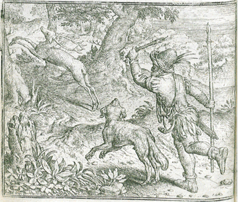 [Van de oude hond] Liefde in het gelaat, Is niet zonder daad. Efeze 6 Collo. 4. Ecclesiasticus 7 en 23. Gij heren doet uw dienaars gelijk en recht Weet dat ge hebt een Heer in het eeuwige leven Laat uw dreigen, leg hen niet teveel op: Maar houdt maat en wil elk het zijne geven, Want al ben je nu meester en hoog verheven, God (die alle gerechtigheid zal belonen) Die maakt geen uitzondering in personen. [17] Van de oude hond. Een jonker had onder andere een kwade hond Die boven alle andere wist de vondst Toen hij jong was om dapper het wild aan te gaan Hij ging er mee op een morgenstond Maar zijn benen waren geheel traag geworden: Een hert werd er opgedaan, maar toen de anderen porden Mits kreupelheid was hij niet tot lopen genegen, Dat hert ontkwam, dus werd hij met voeten getreden De oude hond vanwege zijn meester vol ondeugd. Dat de natuur breekt en verouderd, wie mag er tegen? De hond vond zich onredelijk gesmeten Voor zijn eten, Bad dat hem zijn meester het gebrek zou vergeven Mits de oude en lange dienst hij ook zou weten En niet vergeten Dat hij beter gedaan had in zijn jonge leven: Helaas (baste de hond) ik zie nu wat er is bedreven U behaagt het niet dan waarvan komt profijt, In mijn jeugd heb je me eer toe geschreven Dat is nu achter gebleven: En in de ouderdom ge mij verstoken hebt, De vriendschap in voorspoed duurt maar een kleine tijd. Zo ziet men dagelijks ook geschieden Onder edel, onedel en poorters lieden Zo lang ze van hun dienaars dienst verwerven Zal men ze toeven en een mooi gelaat aanbieden, Dat elk toe ziet voor zijn behoefte Want de heren dienst dat is geen erven. [18] |