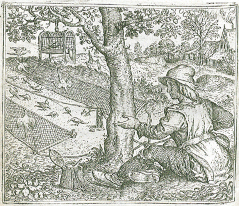 [Vogelaar en distelvink] Als het geluk komt vang het, Niet ijdel naar verlangen. Psalm 36 a, Ecclesiasticus 19 a. Hoop in de Heer en doe goedheid Gij die op de aarde woont, En in zijn rijkdom mild en goed Zal je krachtig gevoed worden: Die de kleine dingen (al zijn ze zwak) Door gierigheid, dwaas versmaden: Die zullen geleidelijk aan afvallen en vergaan; [31] Vogelaar en distelvink. Een vogelaar had een breed net uitgelegd En meende vele vogels te vangen Heeft de vloer goed gespijsd te alle plekken Maar al kwam er een deel in, het was verloren arbeid Het dacht hem niet genoeg, hij wilde het niet dicht trekken, Al kwamen er noch meer toe, het was alles maar een gekken: De vogels vlogen in en uit hun gangen Hij meende hoe langer hoe meer te vangen In zijn streken: En strooide vaak zaad uit met groot verlangen, Beter een vogel in de hand dan vele noch te vangen. Aldus wachtte hij op goed avontuur Zijn zaad werd gegeten en bracht zo de dag door Nochtans hoopte hij te krijgen een groot vogel getal, Hij had het net eens vok, maar gaf ze cure Hij dacht, wil ik, ja, neen ik, het is noch ongeval, Was zo dwaas en mal: Dat hij ze liet vliegen, maar hij dacht ik zal De eerste die er meer inkomen trekken in de klink: De avond viel, hij trok toen alles was gevlogen, En vond alleen in het net een distelvink Die zijn geluk verzwijnt die heeft dubbel min. Insgelijks doen vele gierige lieden Die het geluk onachtzaam laten varen, Menen dat hen wat beters zal geschieden En krijgen het nochtans niet, dan groot bezwaren Wel hen die hun geluk gade slaan en bewaren. [32] |