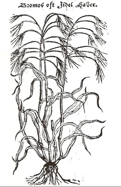 HET V. KAPITTEL. Van Bromos of ijdele of lege haver. (Avena sterilis) Gedaante. Het kruid dat Bromos heet is de haver en Aegilops gelijk zoals het van zijn gans uiterlijk wezen en gedaante een wilde soort van haver schijnt te zijn, want met zijn menigvuldige geknoopte halmen en bladeren komt het met de haver heel overeen, doch is in alles kleiner en teerder. De aar of rietpluim is losser en met ruwere en langere baardjes of vlimmen bezet. De wortel is menigvuldig en dun. Plaats. Dit gewas is van zijn aard gans wild en wordt in de zomer naast de wegen en aan de kanten van de akkers of bouwlanden gevonden. Naam. In deze landen wordt dit gewas van sommige ijdel haver genoemd, in het Latijn Bromus herba, in het Grieks Bromos poa, dat is Bromos kruid [864] tot onderscheidt van de haver die in het Grieks ook Bromos genoemd wordt. Behalve deze Bromos of ijdele haver is er noch een ander kruid dat ook van sommige Herba Bromos genoemd wordt, te weten die soort van gras die men Agrostis altera noemt en hierna van ons beschreven zal worden. Dan dat houden we geenszins voor de Bromos of voor een medesoort er van, maar we hebben aangetoond door het bewijs en getuigenis van de oude schrijvers zelf dat het hier vroeger voor het echt Gramen of gras gehouden plag te wezen. Aard, kracht en werking. IJdel haver of het kruid Bromus heeft een drogende kracht, als Dioscorides schrijft, en het wordt met de wortel in water gekookt tot op het derde deel en als het sap doorgedaan is wordt er zoveel honig bij gedaan en weer ingekookt totdat het zo dik is als lange of dunne honig. Een doekje hierin nat gemaakt en in de neus gestoken is zeer goed tegen de stank van de kwade zeren van de neusgaten. Sommige doen daarbij gestoten Aloë en gebruiken het alzo. In wijn gekookt met droge rozen verbetert de stinkende adem. BIJVOEGING. Naar de losheid van de aren en naar de gelijkenis van haver heet dit gewas ijdel haver, het heet ook in het Latijn Bromos sterilis, Festucago Gazae, Aegilops altera Matthioli, Aegilops Plinij en Phoenix quorumdam, in het Frans averon, in het Italiaans vena vana en orzo salvatico, in het Engels haver grasse. Aegilops altera tragi is de beemd Phalaris. Bromos sterilis altera is dravik. Aard. Diegene die hun voeten in het water daar dit kruid in gekookt is wassen worden er bleek van. |