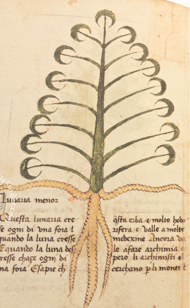 Het op maandag geplukte maanvaren is een echt heksenkruid. Al de lunaria' s waren toverkruiden want naar het gevoelen van de ouden konden de tovenaressen 'de Maan bedwingen om haar schuim te worpen op de Kruiden om te dienen tot de Toverijen.'