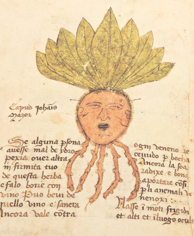 Radijs met het hoofd van Sint Johannes major. Uit Trent Herbal.